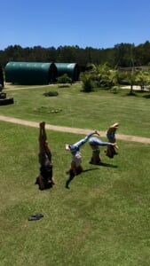 バイロンヨガセンターの仕事仲間と休憩時間にヨガ練習