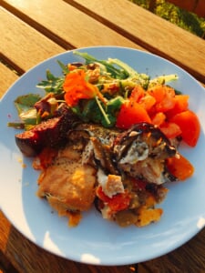ヨガセンターの畑で採れる野菜を使った食堂のベジタリアンフード