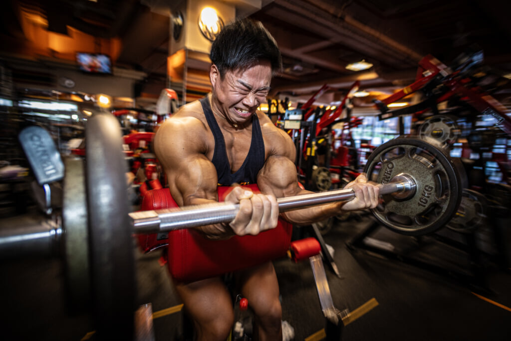 三頭は25〜30セットですが、二頭は15〜18セット。というのも、2021年ぐらいから腕橈骨筋の炎症を起こしてしまって、握り込むのが痛いんですよ。なので、二頭だけ少なくしました。