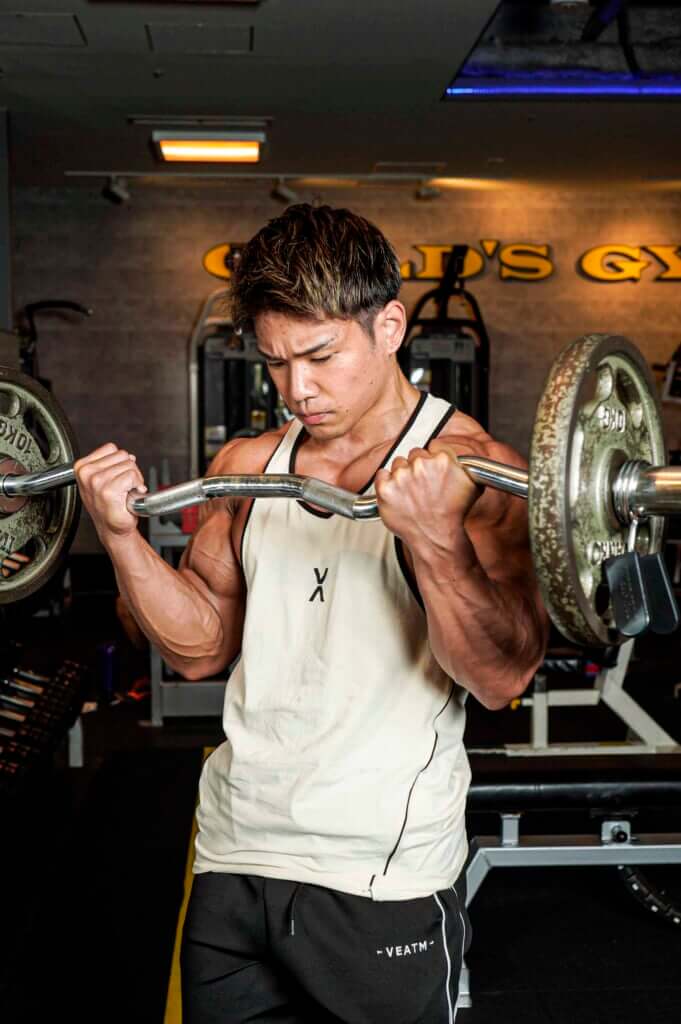 「収縮ポジションで『グッ』と力を入れる感覚を大事にしていますが、このEZバーカールは習得が難しい種目でもあります」