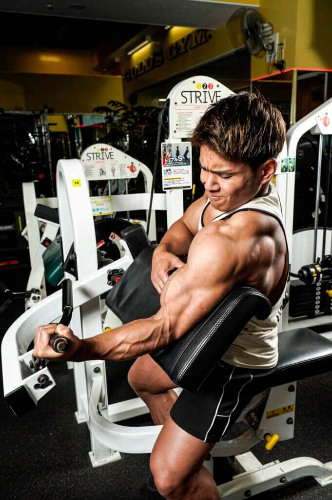 腕は元々自信のある部位でしたが、2018年のオフから2019年のコンテスト出場にかけて、より良くなったと感じました。この頃は、おそらく腕周りは43㎝程度だったと思います。