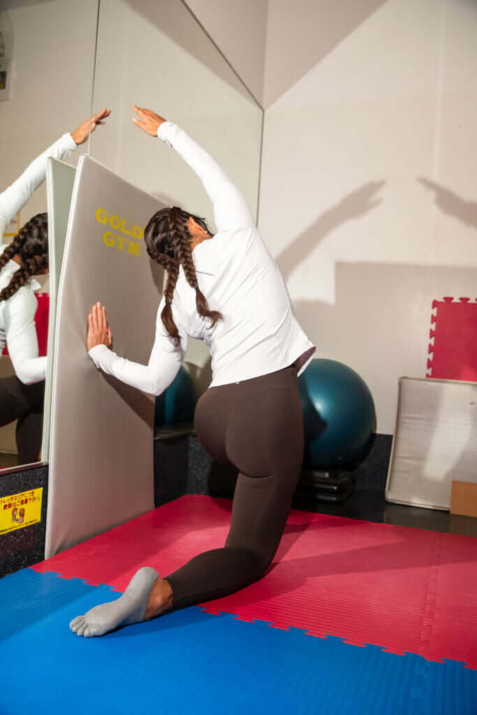 昨年のゴールドジムジャパンカップが終わってから本格的にコンディショニングを導入。メニューは鈴木俊洋トレーナーに2週間に1度パーソナルトレーニングの際に作成してもらう。コンプレフロスやギムニクボールなどツールをうまく活用して自身の機能面の課題に向き合う