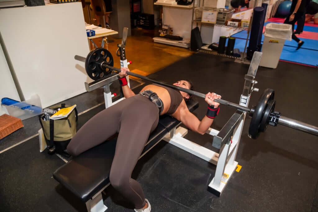 取材日のトレーニングは胸。胸周りの厚みがほしいという理由から筋トレを始めた当初から実施している。ベンチプレスからスタートし、5種目を行う。1種目3セットと決め、インターバルは短い。1時間ほどで全種目を終える