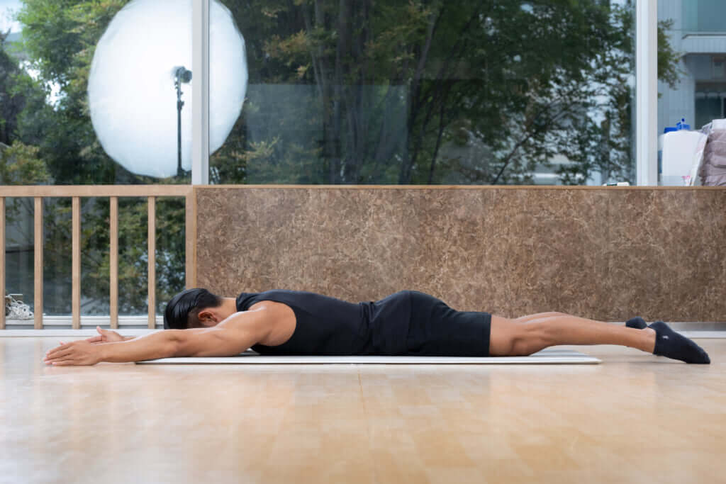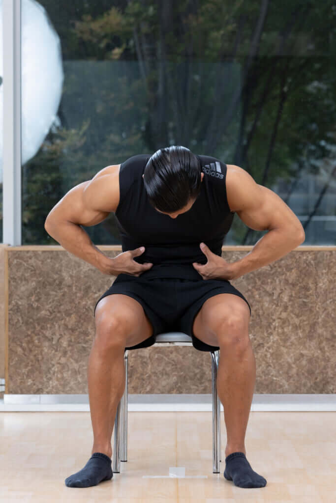 胸椎伸展の動きで上体を持ち上げる
