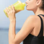 自重トレーニングで負荷を高める手段として、リュックにペットボトルを入れて背負う方法がある。写真はブルガリアンスクワットでの実施例。スクワット、プッシュアップなどでも可能。