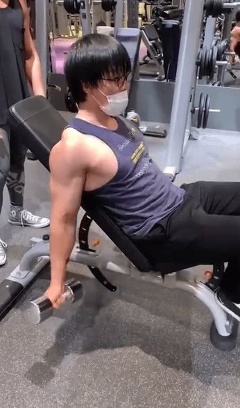 この頃は時間があったので、二頭筋と三頭筋をそれぞれ5種目ずつ行うこともありましたそ 。の中でも、二頭筋のメイン種目はインクラインカールを選んでいました。それ以前は、ケーブルやマシンで効かせるトレーニングをしていましたが、あまり太くはならなかったですね。