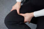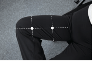 椅子に座り片脚をもう片方の脚に乗せる。太腿の内側を三等分し、上部と下部を肘の平たい部分で滑らせるように優しくマッサージ