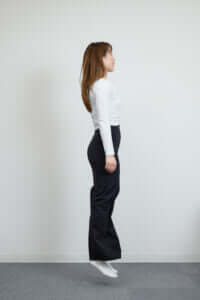 ②その状態をキープしたまま、ジャンプするようにすっとかかとを上げる、あるいは軽くジャンプし瞬時に着地。