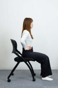 座面(椅子)との接地感を利用して、引き上げる感覚を掴みます。