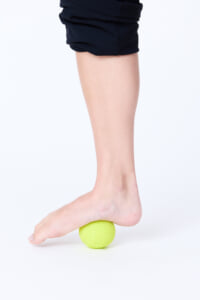 硬いボールにごりごりと足裏を押し付けると足部を痛める可能性があるので、初心者はテニスボールなどから試してみて。
