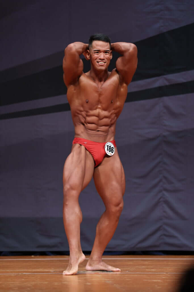 2025年の日本選手権でファイナリスト目前に。今や誰しもが認める実力者となった芳賀涼平選手のストロングポイントの1つとして挙げられるのが、圧倒的なサイズと厚みのある腹筋だ。