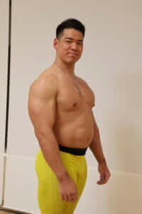 芳賀 身長と四肢の長さは僕の骨格的特徴の一つです。身体の骨格も誰よりも大きいので、筋肉はもっと搭載できるはず。1年中ボディビルに徹してさらなる筋量アップ、丸みのある身体を目指し、信頼するダイエットコーチと共に挑み続けます。