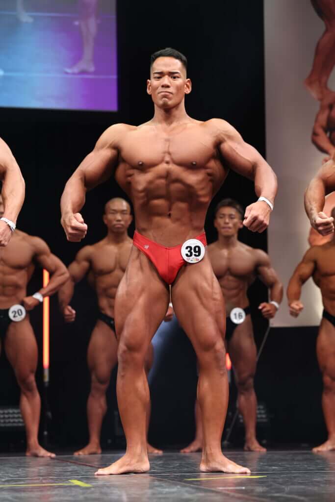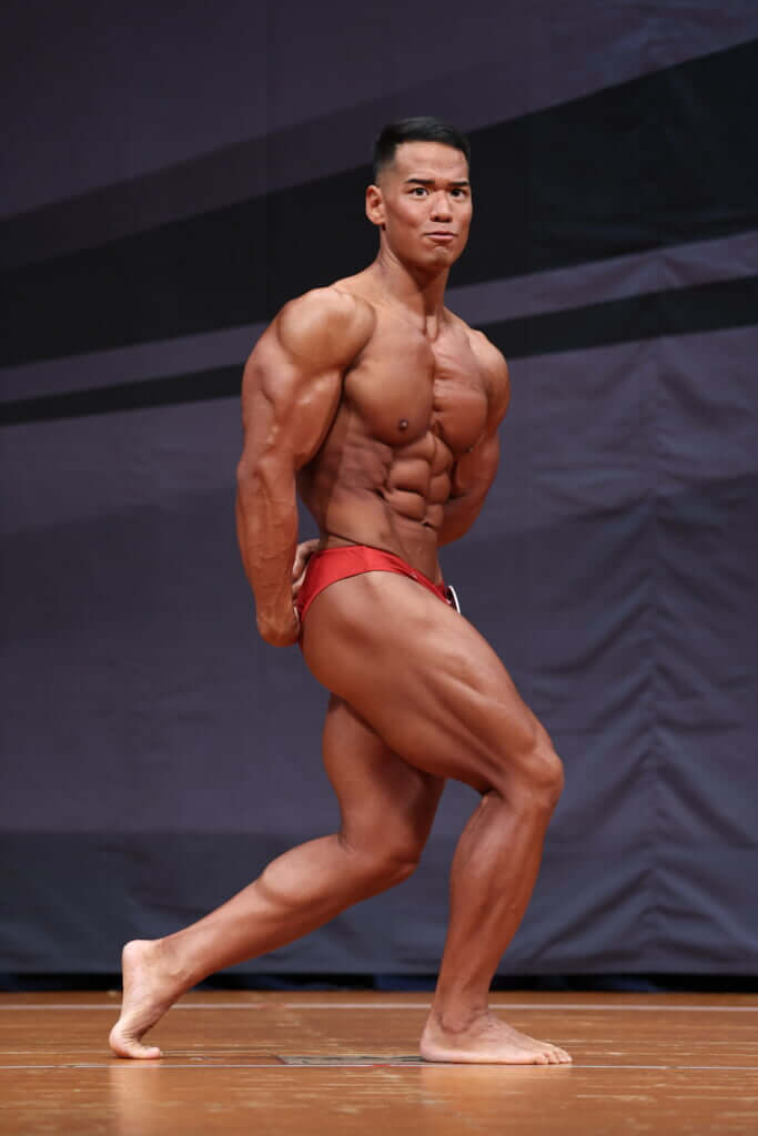 芳賀 確かに強みの一つではありますが、そう感じられるようになったのは比較的最近のことです。2023年、全国規模の大会に出場し始めたあたりから、強い選手と並んでも「腹筋は負けていないぞ」と。たとえ自分より皮膚感が良く、絞れている選手がいたとしても、腹筋が分厚いとアブドミナル&サイのポーズをとった途端になんだか自分の方が絞れているように(僕は)見えているんですよね。そんなことはないはずなのに。