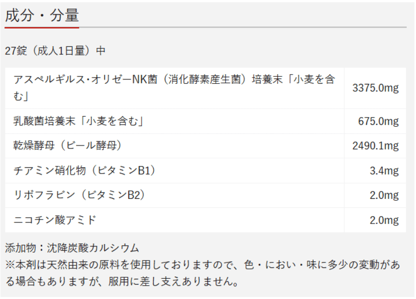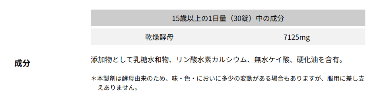参考:エビオス錠に含まれる栄養成分 | エビオス錠 | アサヒグループ食品
