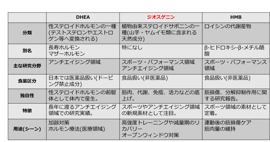 図3 ジオスゲニンと他成分との比較表
