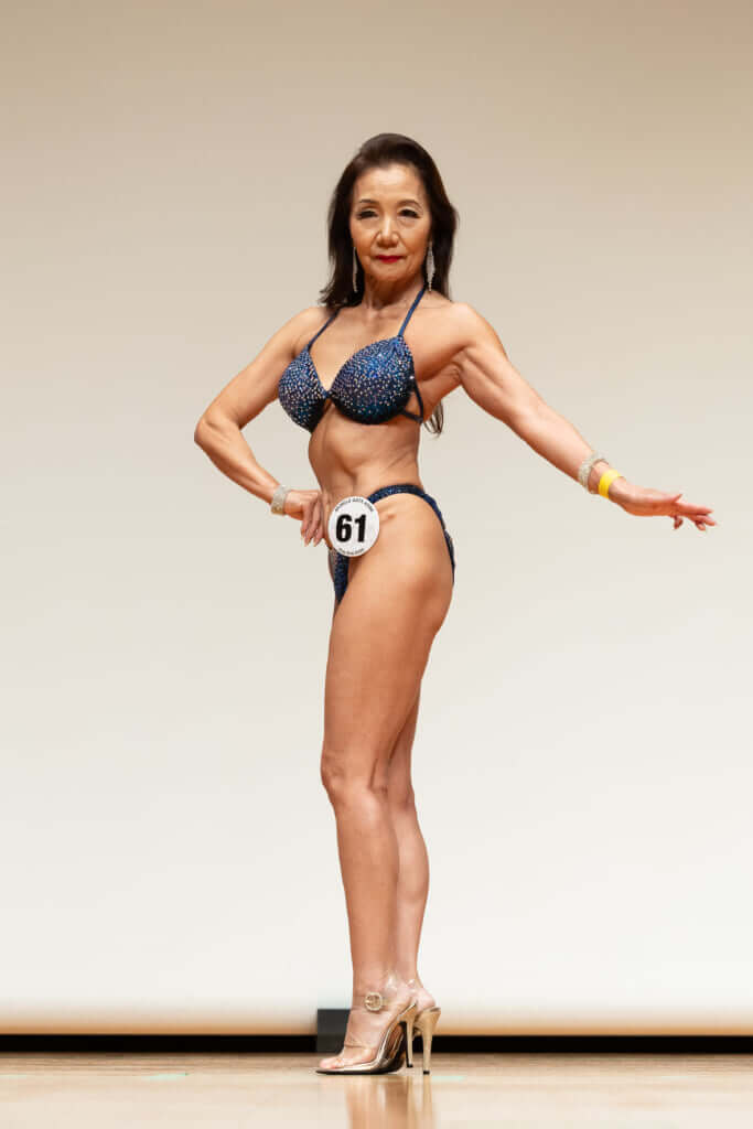 【石川多津子さん】近所の同い年の奥様に誘われて、40歳からジムに通い、 現在は、週1の水泳と週4のダンス、本格的な筋トレを継続。 2025年に70歳でビキニフィットネスデビューを果たし、1年で5大会出場。 大会ごとに進化を見せた