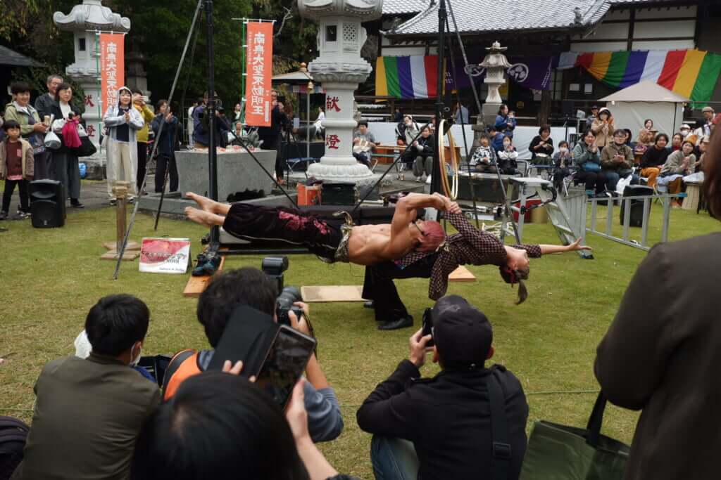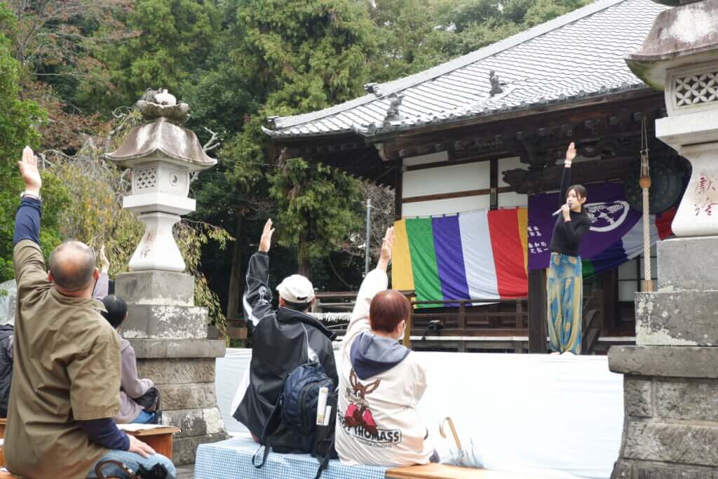 肩を回したり、背伸びをしたりと、カレーの行列に並びながらでも誰でも気軽に参加できる内容で、「ヨガって気持ちいいかも」と感じた人々が、自然と本堂のレッスンへと足を運んでいった。