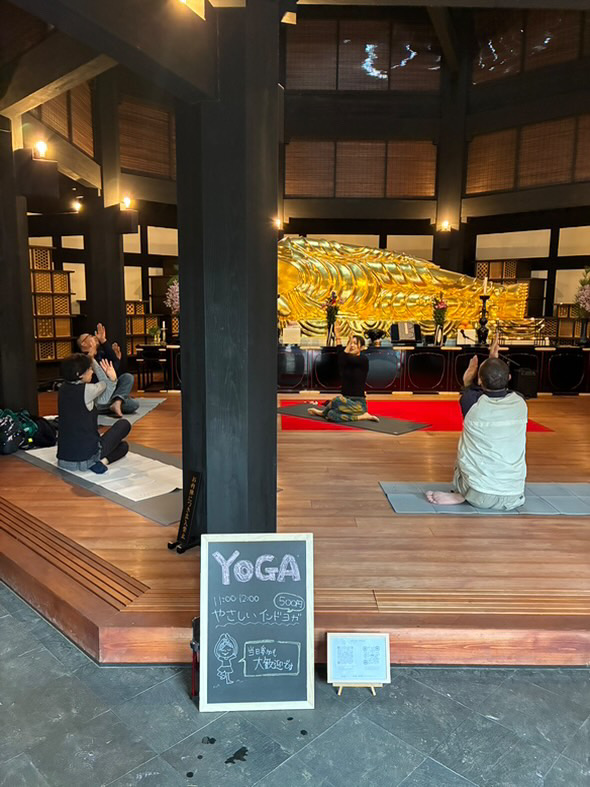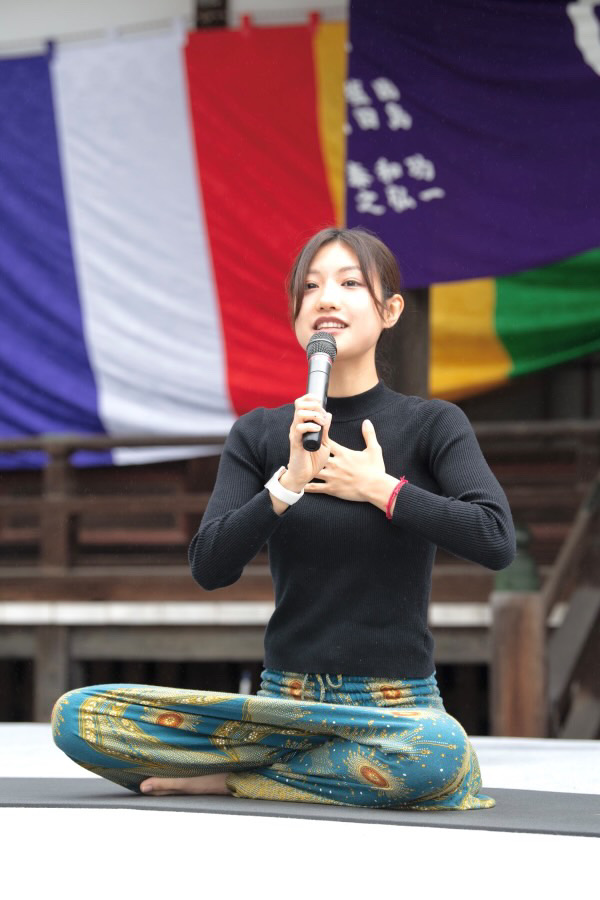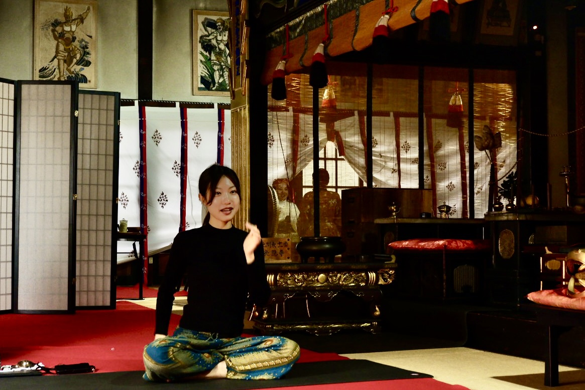 一方、ろうそくの香りが漂う静かな本堂では、インドヨガ講師・Honokaさんによる「整えるヨガ」と「ラージャヨガ」が開かれた。
