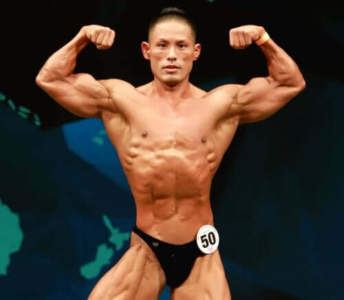 三部選手がなぜ、ボディビル競技に取り組んでいるかというと一言、「健康のため」と答えてくれた。増量や減量において大きな体重変化が伴うこともあるこの競技に、なぜ健康のため取り組むのか。世間一般の意見では、「絞ると風邪をひく」、「ウエイトトレーニングはケガをする」などと言われることも多いボディビル競技。さらには、大きな減量幅が苦になることも。しかし、三部選手はそういう意見に対して、「僕、そもそも大きな幅の減量はしないんです」と、減量は苦しくなく、大きく絞っても過去に10kg程度だったという。「前に日本クラス別選手権に55kg以下級で出たときは52.5kgまで瞬間的に落としました。そのときはさすがにキツかったですが、めったにやらない」と話し、普段は60kg以下級の出場がメインになる。また、ケガを防止する意味で、フォームが乱れるような無理な重量を扱うことはしない。